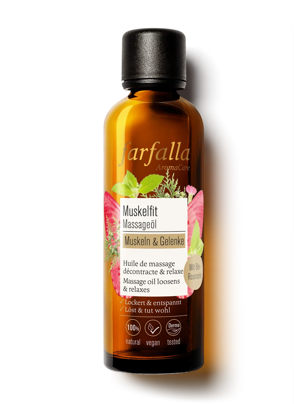 Muscle & Joints Muskelfit Massage Oil by Farfalla is a natural aromatherapy massage oil developed for body massage. Its blend of plant-based oils and essential oils supports a pleasant massage experience and contributes to overall wellbeing.
