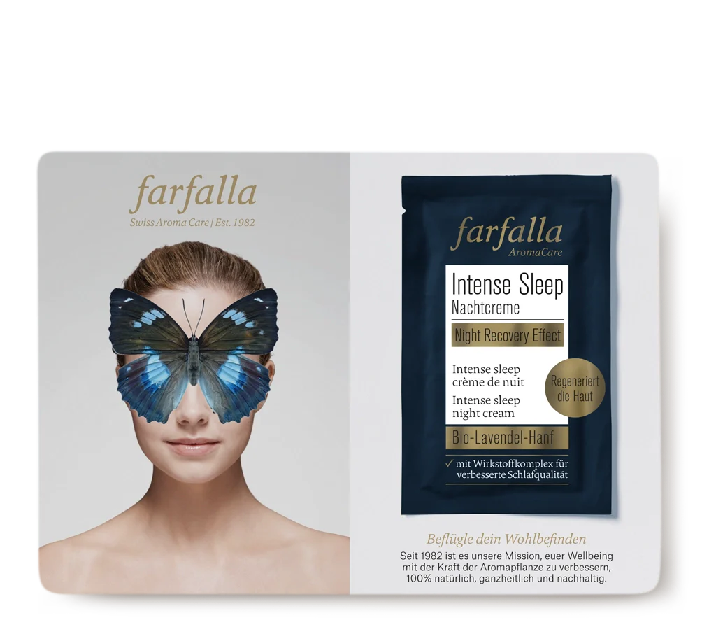 This night cream by Farfalla is designed for evening skin care routines and comes in a sample size format. The cream features a rich yet balanced texture and is formulated for overnight skin care use as part of a regular skincare routine.