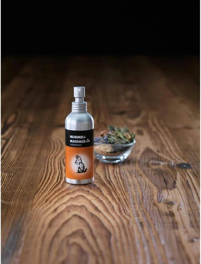 Puralpina Marmot Massage Oil is a high-quality Swiss massage oil made with pure marmot oil. The caring massage relaxes and soothes your muscles and joints pleasantly. Marmot Massage Oil is excellent for wellness massages. It cares for your body and supplies your dry and sensitive skin with fat and moisture. The golden oil glides gently on the skin, leaving a wonderfully silky feeling with a delicate scent of orange. Relax and enjoy the peace of the Alps.