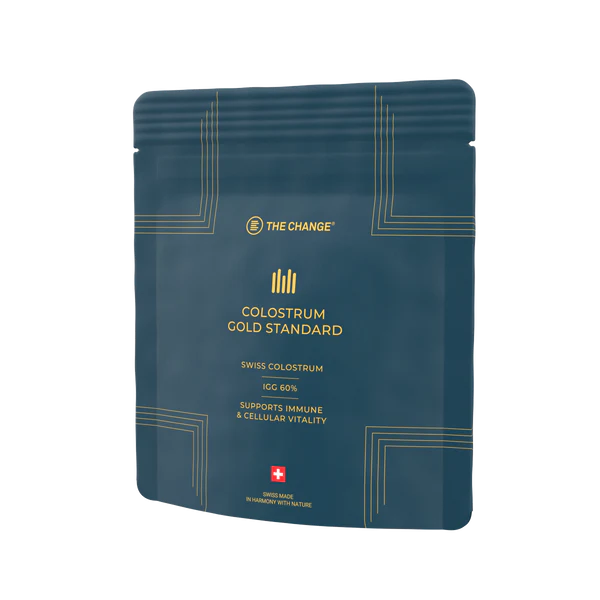 Colostrum Gold Standard is a premium Swiss-made bovine colostrum supplement with an immunoglobulin G (IgG) content of over 60%. It is produced using cold sterile filtration and ultrafiltration to help preserve the native structure of sensitive proteins. The formula is defatted and decaseinated, gluten-free and lactose-free, and delivered in acid-resistant capsules designed to protect the ingredients until they reach the intestine.